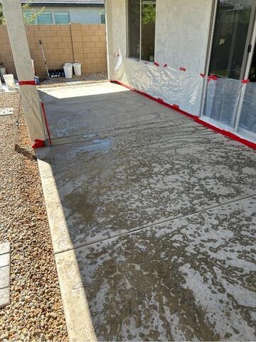 This San Tan Valley homeowner wanted to give their back patio a fresh, updated look while also protecting the concrete from Arizona’s intense UV rays and moisture damage. Our crew applied DecoShield®, a durable concrete stain that not only enhances the appearance with a clean, uniform finish but also seals the surface for long-lasting protection. Before the application, the area was prepped and masked to ensure crisp edges and clean coverage. The final result is a beautiful, darker tone that highlights the texture of the concrete while improving its resistance to fading, staining, and weathering — perfect for Arizona’s desert climate.