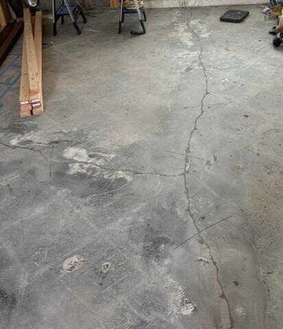 CRACK FILL - Clean out existing slab crack. Fill with a rigid 2 part poly. Clean up and remove all debris.